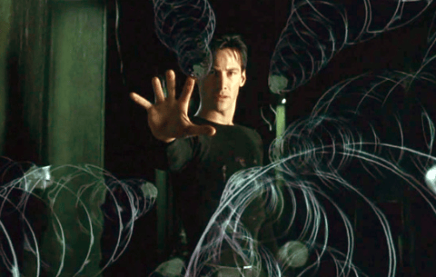 Neo is then revived and gains the power to perceive and control the Matrix. He defeats Agent Smith and can stop bullets in their tracks.