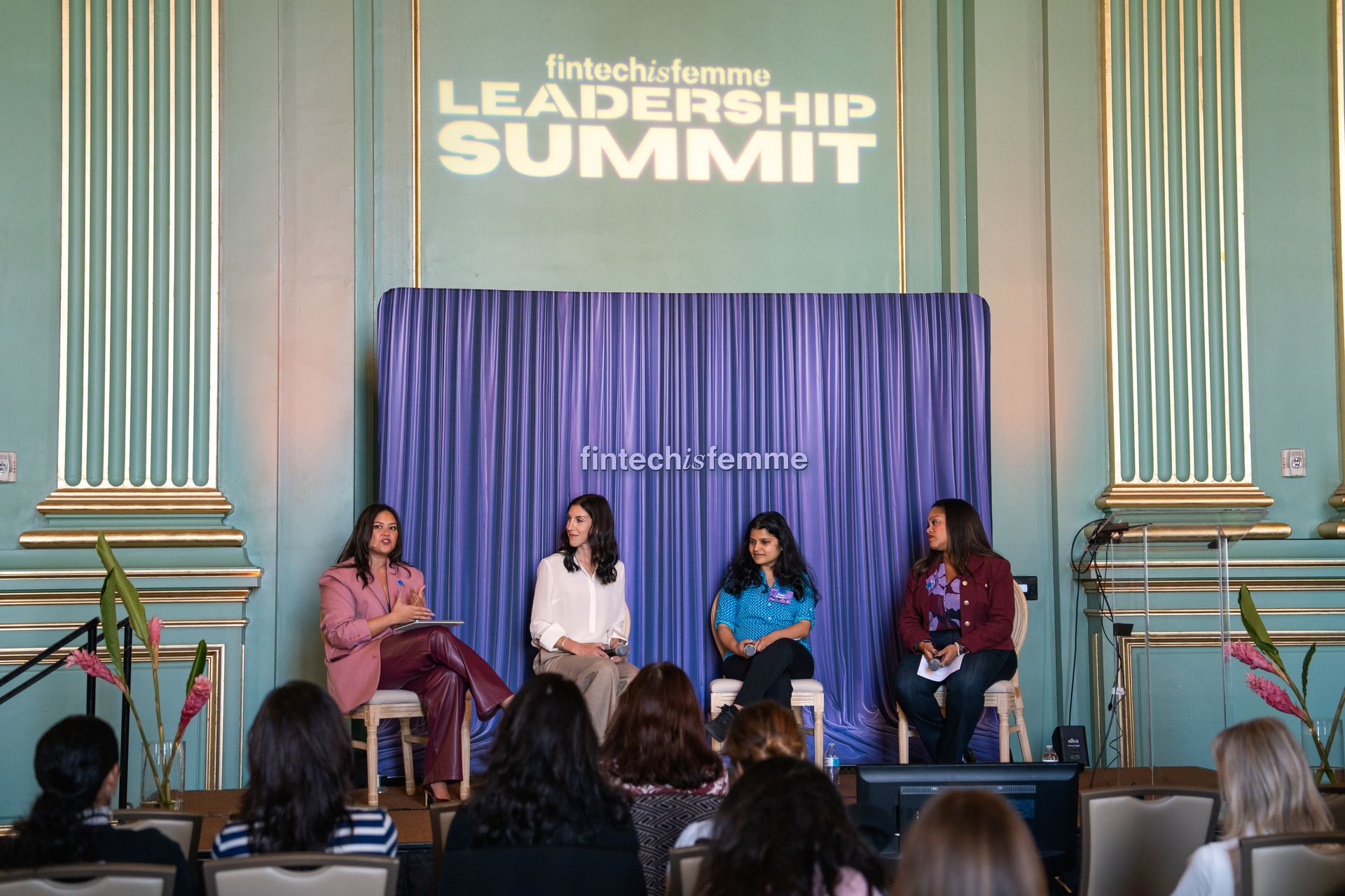 On stage with Melissa Magner, Trisha Kothari, and Sibongile Ngako during the Fintech Is Femme Leadership Summit AI Edition on Oct. 8, 2026. San Francisco.